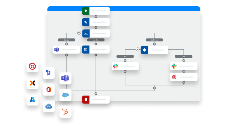 เชื่อมต่อโซลูชันที่มีอยู่ทั้งหมดของคุณเข้ากับ formsflow.ai ได้อย่างรวดเร็วและง่ายดาย ด้วย แพ็คเกจ Native Integrations Pro ที่ช่วยให้คุณเชื่อมต่อกับซอฟต์แวร์ยอดนิยมกว่า 1,000 รายการได้โดยตรง เช่น ซอฟต์แวร์สำหรับการส่งข้อความ การจัดเก็บข้อมูล อีเมล และอื่นๆ